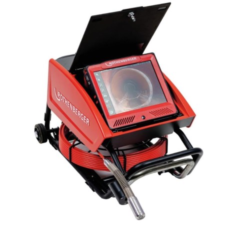 Cámara de inspección Rothenbergar Rocam-4 Plus, cable de 30m, cabezal de 30mm o 40mm, pantalla de 10,4", teclado de inserción de texto, grabación de video y fotos, cabezal autonivelante. Armazón completo integrado.